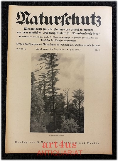 Naturschutz : Monatsschrift für alle Freunde der deutschen Heimat, 15. Jahrgang 1933 ; Nr. 3, mit dem amtlichen Nachrichtenblatt für Naturdenkmalpflege 11. Jahrgang 1933 ; Nr. 3