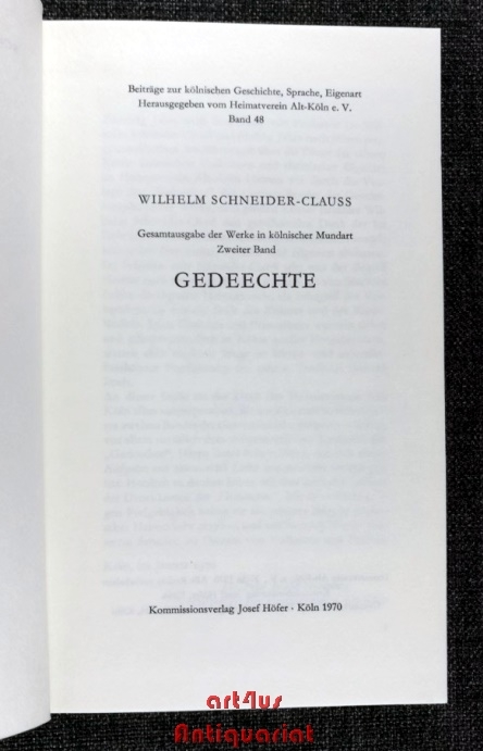 Gesamtausgabe der Werke in kölnischer Mundart; Bd. 2 : Gedeechte.