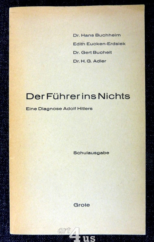 Der Führer ins Nichts Eine Diagnose Adolf Hitlers. 4 Referate über Hitler als Politiker. Ideologe. Soldat u. Persönlichkeit.